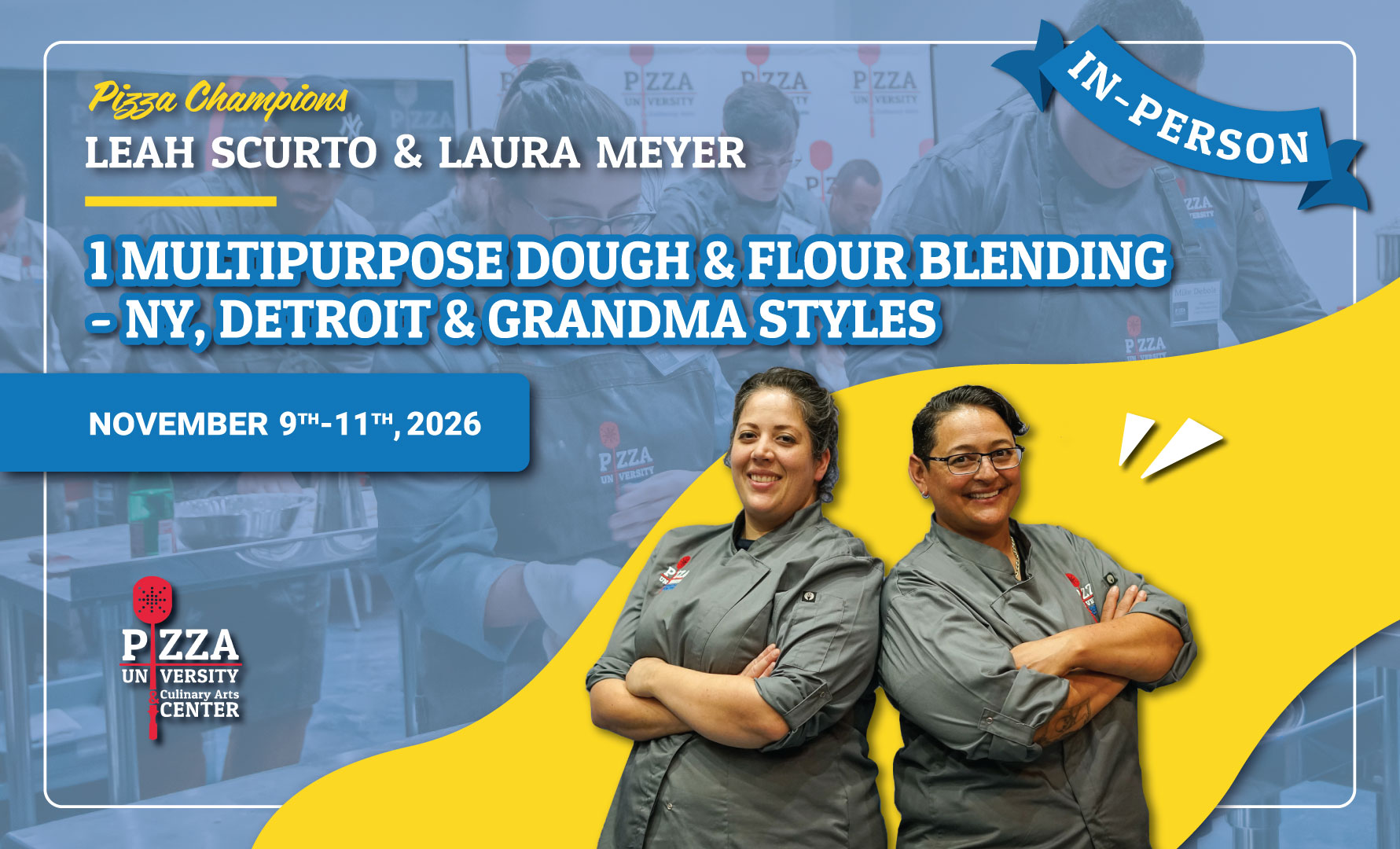 In this hands-on class, Pizza Champions Leah Scurto and Laura Meyer will guide you as you master three iconic pizza styles — New York, Detroit, and Grandma — using a single versatile dough.
